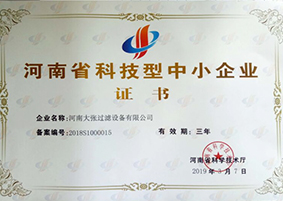 2020年9月9日——河南大張過濾設備有限公司榮獲“高新技術企業”證書